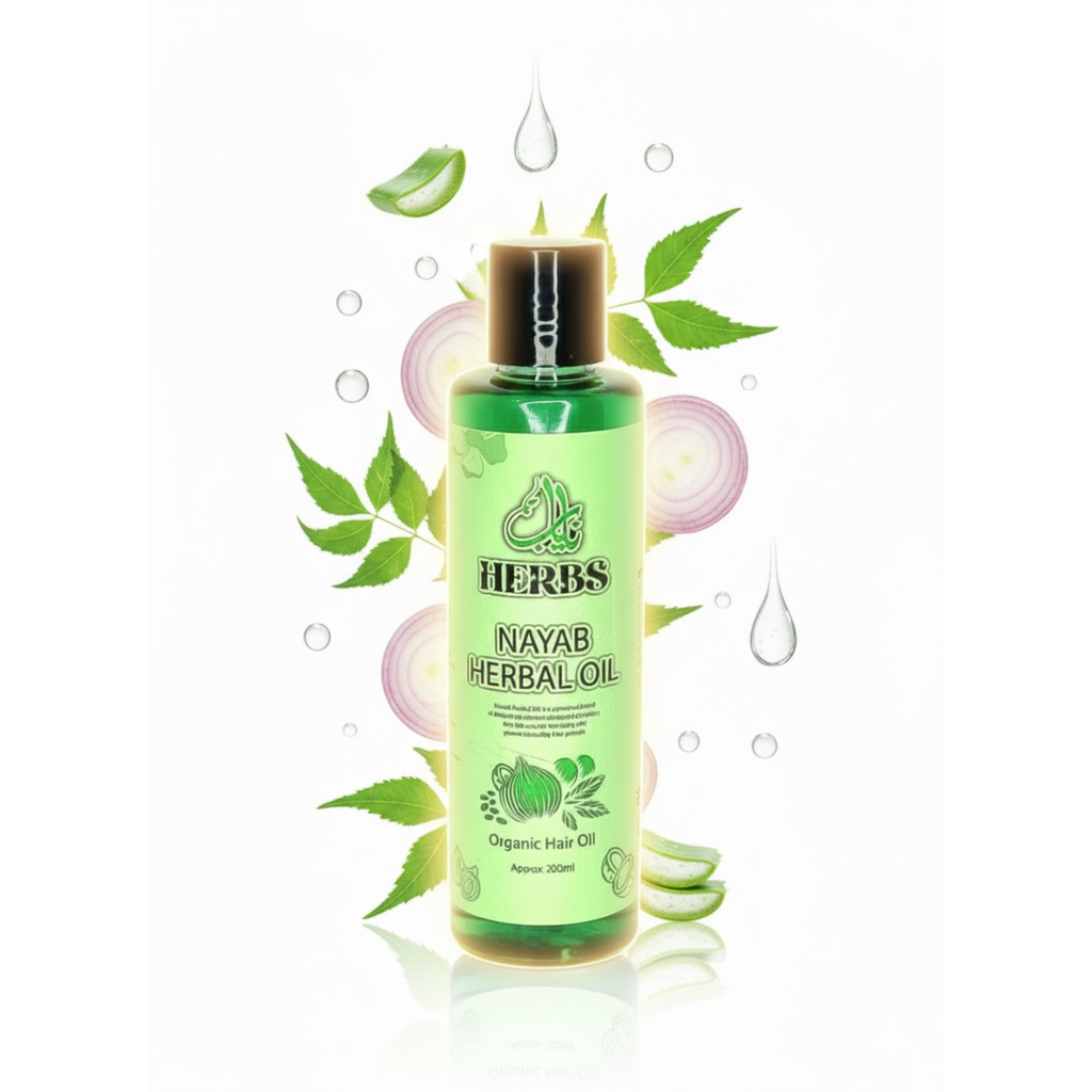 Are you tired of hair fall, dandruff, thinning, or dull lifeless hair? Nayab Herbal Oil is a 100% organic, chemical-free formula enriched with 16+ powerful herbal oils that work together to restore, repair, and regrow your hair naturally.